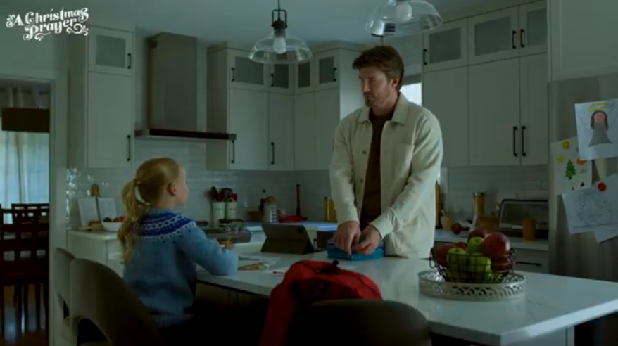 In A Christmas Prayer, Natalie (Robins), a children’s book illustrator struggling with creative burnout, finds unexpected inspiration when she comes across a little girl’s Christmas gift list. Unlike other children’s Christmas lists, Caroline writes her list of heartfelt prayers to Jesus, requesting blessings for her family, friends, and community – including one to ask that her recently widowed dad (Russell) will find happiness again. Touched by Caroline’s list, Natalie begins to secretly fulfill each blessing. In turn, she is inspired to create a new character, Adeline the Angel, to illustrate the ways Jesus quietly works through everyday people to answer prayers with love and grace.